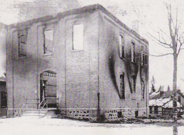 Disaster struck on March 4, 1913, when the school burned from a fire of unknown origin. Only fifteen books and the walls survived the fire. Pupils continued classes in the Woodman Hall (formerly the Odd Fellows Hall) next door while the school was rebuilt.