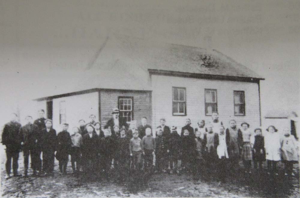 A split-level brick school was built on the site in 1932. It had a drinking fountain, a chemical toilet, one large classroom and a library.