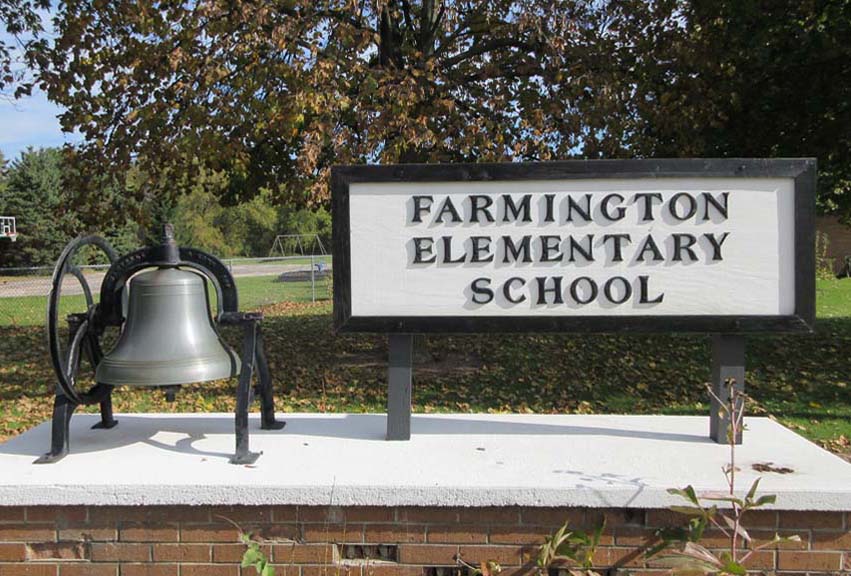 Population growth increased dramatically in the 1970s, and an addition to the school was built in 1975. Farmington Elementary School today serves over 200 students in grades Pre-Kindergarten to Grade 5. The old bell from Fillmore School is positioned near the front of the school.